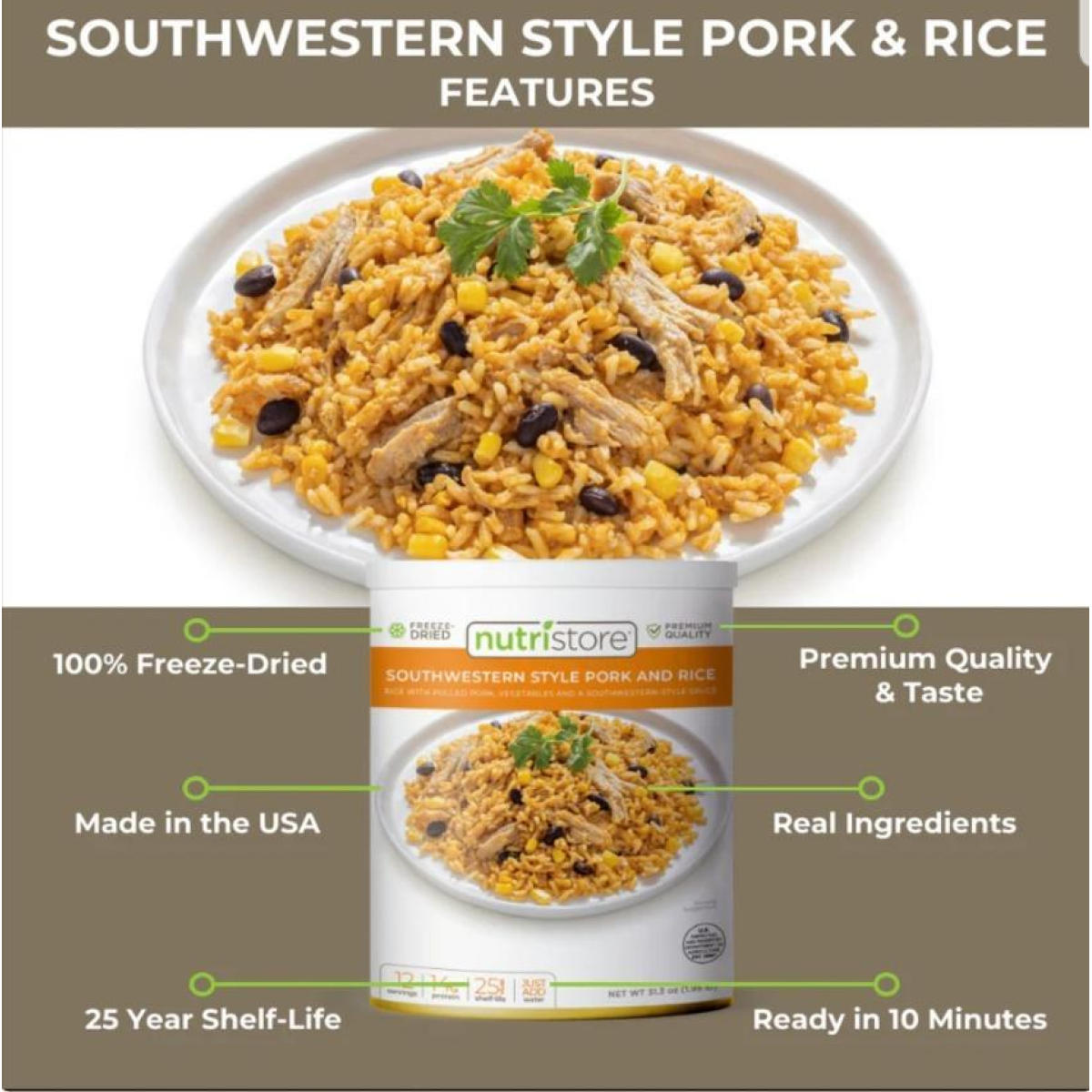 Сублімований Nutristorefoods Southwestern Style Pork and Rice США зберігання 25 років!
