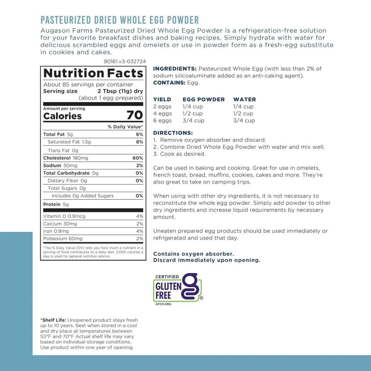Augason Farms Сухий цілісний яєчний порошок, банка, 100% справжні яйця, екстрений запас їжі, повсякденне харчування, 72 порції