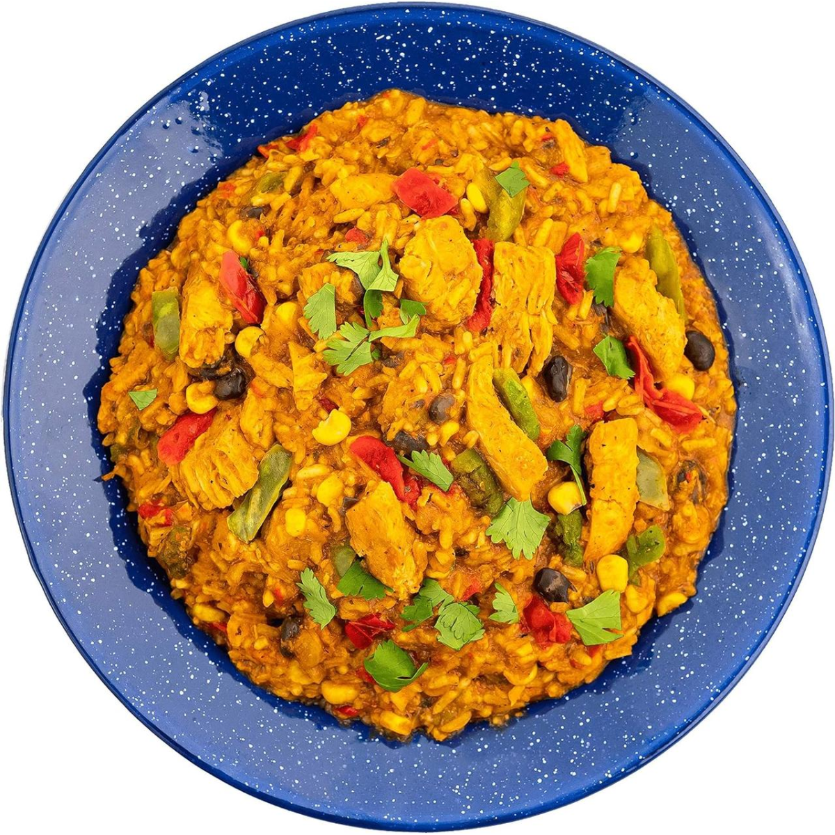СМАЧНЕ БЛЮДО! Приготована з курки, болгарського перцю, рису, чорної квасолі, кукурудзи, цибулі та приправ, ця страва обов“язково додасть гостроти будь-якому пригоді. Сублімовано для збереження поживних речовин і свіжості. Не потребує охолодження.