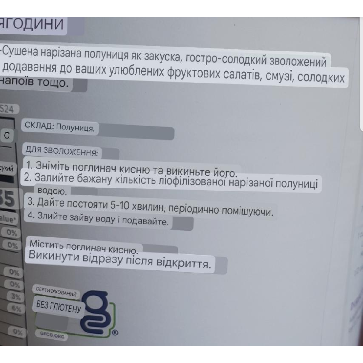 ІНГРЕДІЄНТИ: сушена нарізана полуниця.