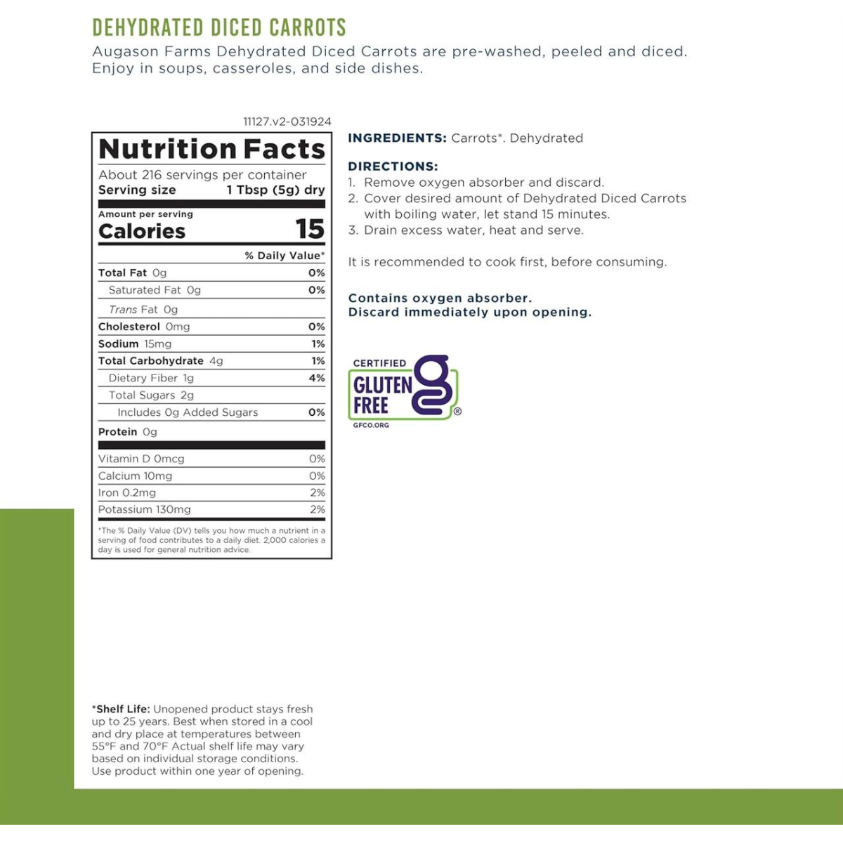 Augason Farms Dehydrated Diced Carrots Can (за цим запитом в пошуковику Amazon ви можете знайти сторінку товару та почитати відгуки реальних покупців, а також ознайомитися з рейтингом товару)