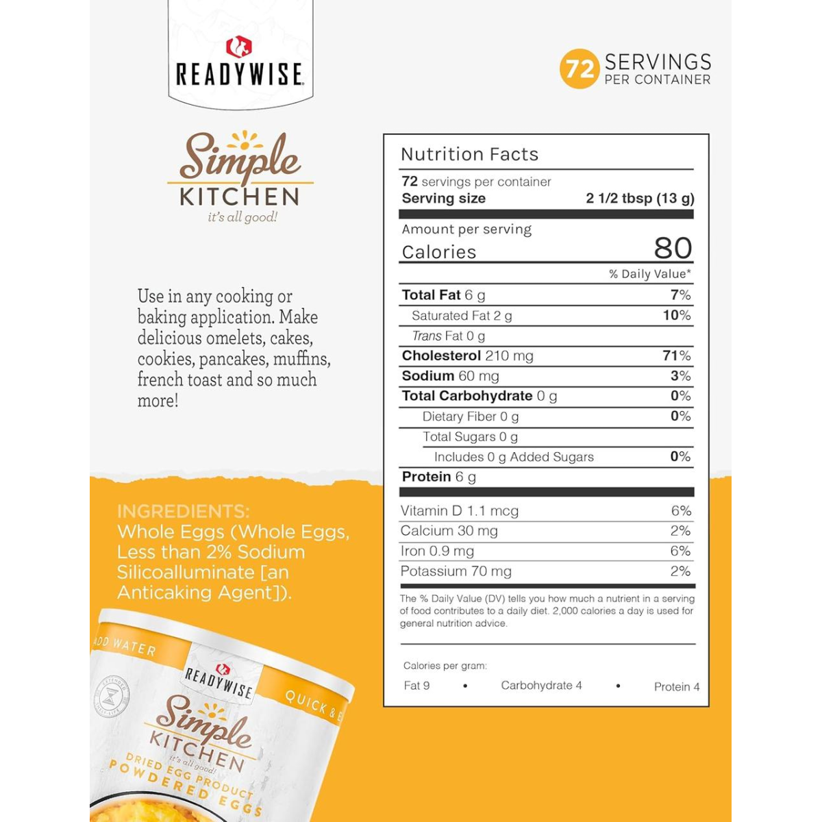 READYWISE - Simple Kitchen, Powdered Eggs, 72 Servings