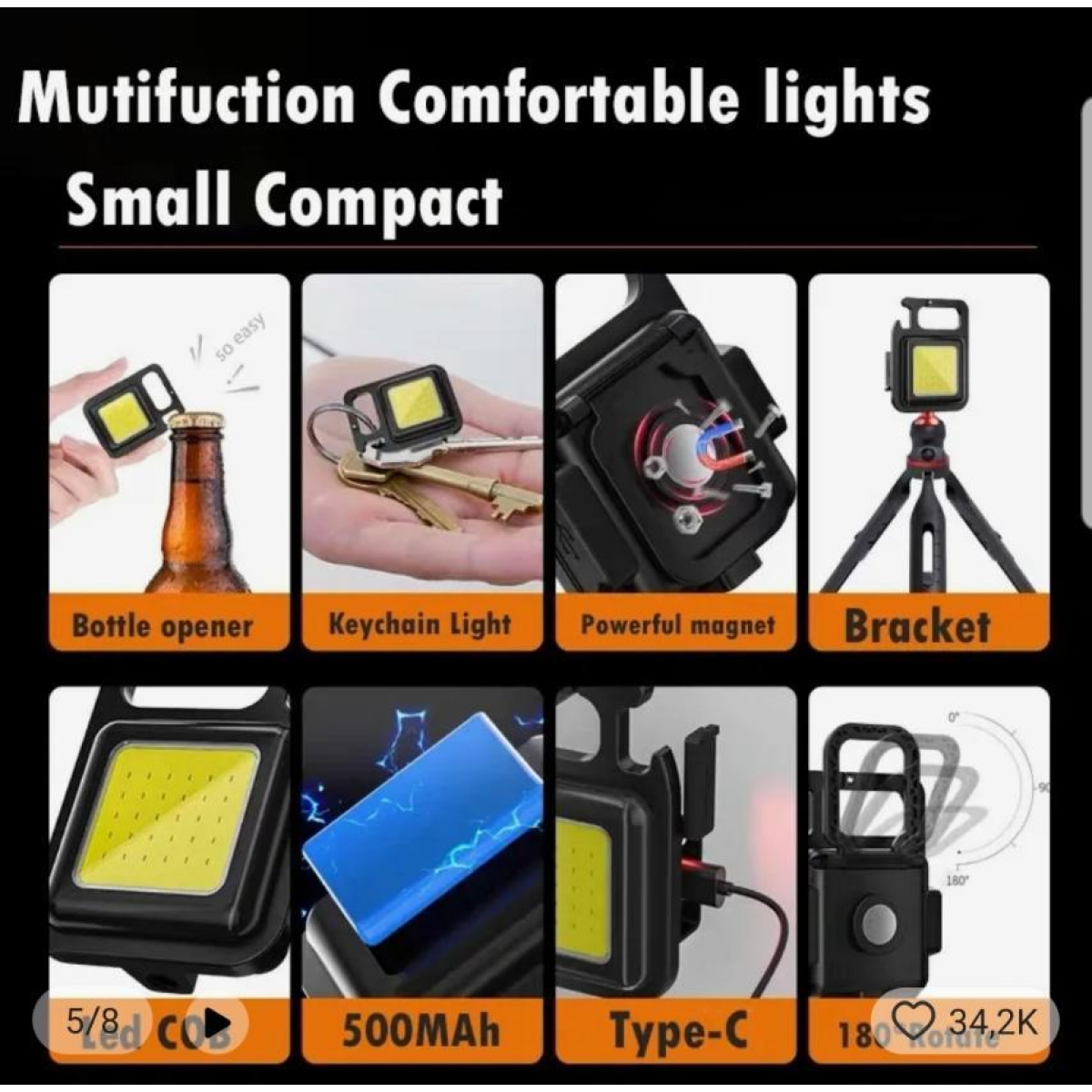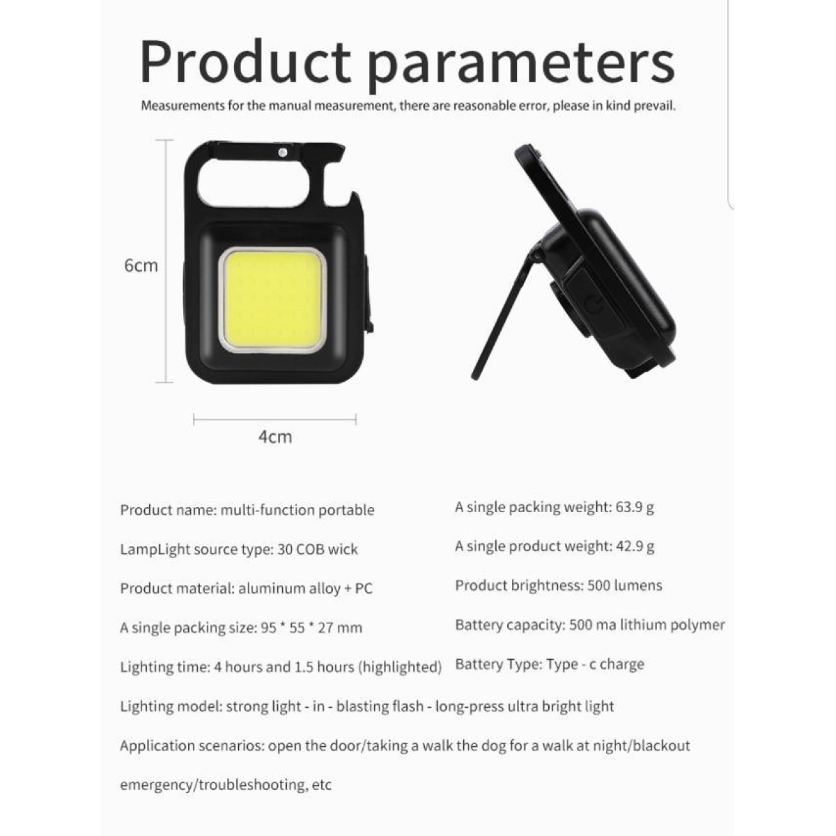 Мініфонарик на карабіні. Вага 43 грамів Розмір 6 см х 4 см Акумулятор Карабин. Відкривачка. Магніт (зручно кріпити до капота під час ремонту двигуна, сантехнікам зручно кріпити до труб у підвалі, домогосподаркам зручно кріпити до витяжки над плитою). Заряджається від Type-C (шнур USB/Type-C) у комплекті. Світло регулюється за яскравістю, також є режим “миготіння“ (світловий сигнал про допомогу).