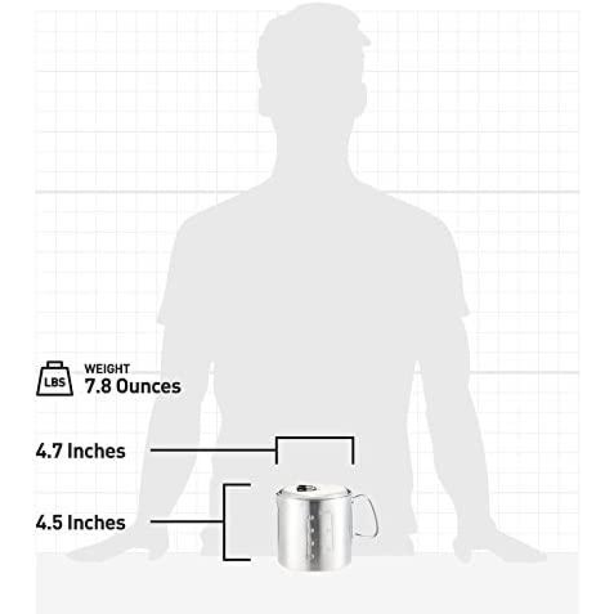 Solo Stove Pot 900 має розміри 4,5 дюйма (висота), 4,7 дюйма (діаметр). Максимальний об“єм 30 унцій. Матеріал: Нержавіюча сталь 304 Вага: 220 грамів Зроблена спеціально для дрібниці Solo Stove Lite. Щіпчниця ідеально поміщається всередину казанка, економія простору в рюкзаку.