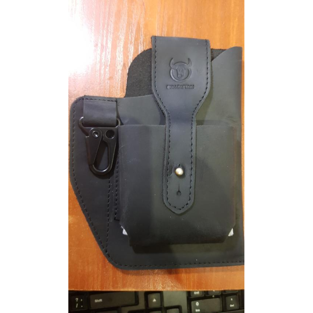 Сумка шкіряна чоловіча ЧОРНА на пояс. Bullcaptain