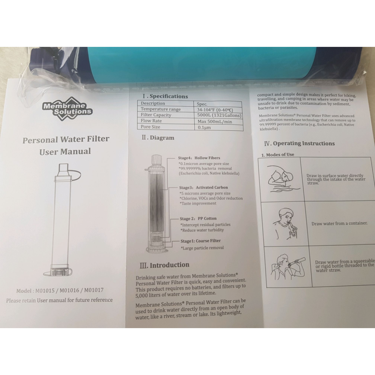 Продається комплект: 4шт. Висока оцінка товару на Amazon Понад 7500 відгуків покупців. Популярний у США товар. Вага одного фільтра 60 грамів Довжина 15 см Ширина 2,5 см Ресурс одного фільтра 5000 літрів води. Фільтр для туристів, виживачів, військових. Легкий, якісний, компактний, з великим ресурсом. Спорядження для виживання у воді на відкритому повітрі — сертифіковане SGS, звіт про випробування NBF21-004693-01. Якщо ви хочете отримати чисту питну воду просто та швидко, ви можете використовувати це рятувальне спорядження. Портативна та легка система фільтрації ідеально підходить для відпочинку, походів, кемпінгу. Це також ваш гарний компаньйон для розвідки, внутрішніх і міжнародних поїздок і готовності до надзвичайних ситуацій. Портативність і довгий термін експлуатації — ця солом“яна фільтрація завдовжки всього 7,1 дюйма та діаметром 1 дюйм підходить для будь-якої пляшки, чашки або склянки з різзю 28 мм. Вона важить лише 2 унції та поміщається на долоні, у кишені, у тренажерному залі. сумка, рюкзак, сумка для виживання або гаманець. Обидва кінці соломинки фільтра для води Upgrade знімаються для очищення, щоб продовжити термін експлуатації, забезпечуючи до 5000 літрів (1320 галонів) питної води. Не проґавте цю можливість пити чисту воду зручно, хоч куди б ви пішли. 5-ступенева фільтрація — наша поліпшена 5-ступенева система фільтрації містить сітчастий фільтр грубого очищення, двошарове поліпропіленове бавовняне волокно, активоване вугілля зі шкаралупи кокосового горіха й ультрафільтраційні мембрани з порожнистого волокна, який може видалити 99,99999% шкідливих речовин (забруднення, запах, хлор та органічні хімікати тощо) і поліпшити смак. Забезпечення найбезпечнішої води в найнесприятливіших умовах. Менший розмір пор — усі ми знаємо, що чим менший розмір пор, тим вища точність фільтрації, наш розмір пор становить 0,1 мікрона, що може відфільтрувати 99,99999% шкідливих частинок. Порівнюючи з соломинками для очищення води з розміром пор 0,2 мікрона, представленими на ринку, соломинка для очищення води з розміром пор 0,1 мікрона від Membrane Solutions підтримує оптимальну швидкість потоку (500 мл/хв) і високу точність фільтрації одночасно. Високоякісні матеріали та універсальні режими фільтрації. Виготовлені з міцного харчового пластику, виготовленого з АБС-пластику, що не містить бісфенолу-А, що забезпечує безпечну та якісну питну воду. Порівнюючи з великою фільтрувальною солонкою, представленою на ринку, фільтри для води Membrane Solutions мають меншу рамку, зручніші у використанні та мають більше режимів фільтрації, ідеально підходять для з“єднання з мішечком для м“якої води або одноразовою пляшкою для води для видавлювання, навіть як заміна гравітаційного фільтра для отримання чистої води для сім“ї та групи. Дивіться свої товари в рубежності “Виживання/Бушкрафт“. Є вибір якісних фільтрів та інших товарів для виживання в екстремальних умовах.