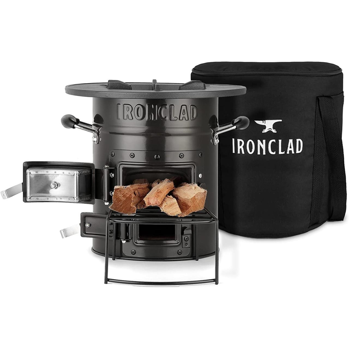 ПУЛЕНЕПРАЧНА КОНСТРУКЦІЯ — Розроблена для найсуворіших умов, кожна дров“яна піч для табору Ironclad Supply Rocket виготовлена з найміцніших матеріалів, щоб забезпечити її довговічність. Велика чавунна плита із шістьма конфорками може вмістити більшу частину посуду для похідної кухні, як-от каструлі, сковороди та жаровні, щоб задовольнити всі ваші потреби в приготуванні їжі на відкритому повітрі. Корпус із порошковим покриттям також підвищує зносостійкість, а термостійкі ручки дають змогу легко переміщати піч, навіть коли вона працює на дровах.