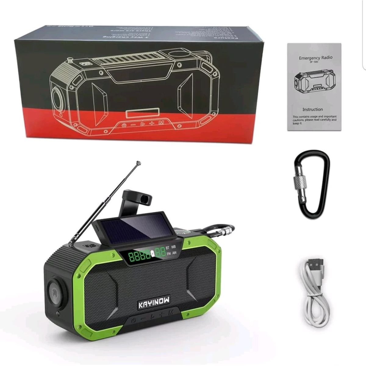 Аварийное радио. Навч функцій. 5000mAh Маленький, поміщається в долоню. Колір чорний із червоними (або зеленими) вставками. Опис: Багатофункціональність: це зовнішнє радіо-це бездротовий динамік, радіо, зовнішній акумулятор, ліхтарик, який може задовольнити ваші різні потреби. Аварійне використання: Цей бездротовий динамік розроблений із дизайном ручки та може живитися від сонячної енергії, що важливо для несподіваних ситуацій. Підходить для випадків: це аварійне радіо добре підходить для кемпінгу на відкритому повітрі, піших прогулянок, дикого виживання, подорожей, а також гарний вибір для щоденного використання. Корисно: це сумісне з bluetooth-радіо дає змогу слухати радіо майже в будь-який час і в будь-якому місці, так що ви можете отримати важливе радіоповідомлення в дикій природі. Водонепроникність: з водонепроникним дизайном IPX5, це аварійне радіо не легко пошкодити водою й дощовою водою. Специфікація: Материал: ABS/TPU. Частота: 760-1062 кГц, 87,5-108 МГц. Версія Bluetooth: 5,0. Підтримувані протоколи: A2DP/AVRCP/HFP/HSP. Частотна характеристика: 60-16 кГц. Динамік: 45 мм. Акумулятор: літій-полімерний акумулятор, 5000 мА·год (вбудований). Час роботи: 30 годин. Співвідношення S/N: >80 дБ. Відстань передавання: прибл. 10 м/32,08 ФТ. Водонепроникність: IPX5. Розмір (ДхШхВ): прибл. 16.6x5.2x7.8 см/6,54x2,05x3,07 дюйма. Примітка: Через різні комп“ютерні дозволи може бути невелике колірне спотворення. Можливі незначні похибки через різні ручні виміри. Посилка містить: Радіо 1 шт. (з usb-кабелем 1 шт., посібник користувача 1 шт., затискач 1 шт.).