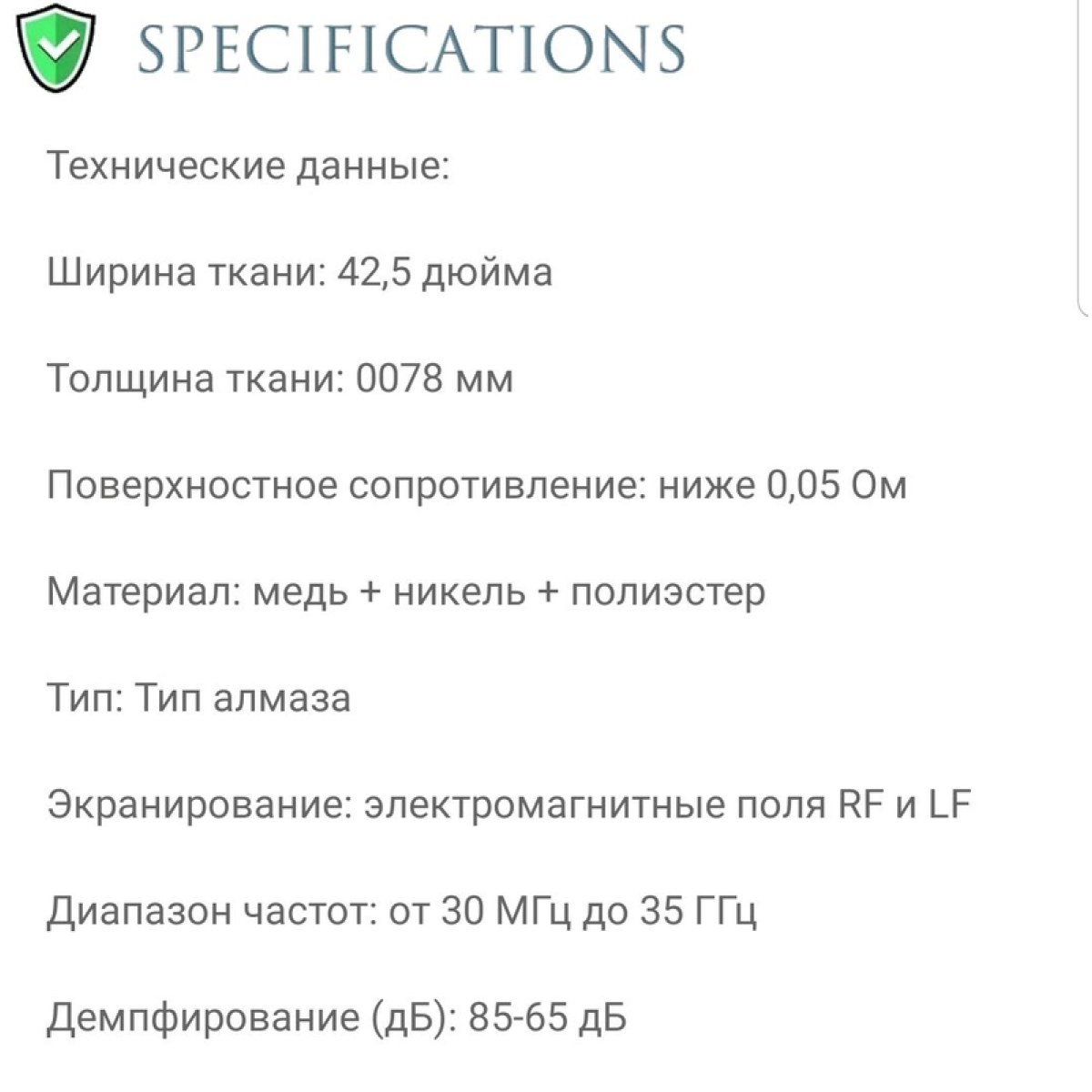 Антирадіаційна екранувальна тканина Faraday. Размер полотна 110см на 600см Есть размеры (50см на 110см) (110см на 200см) (110см на 500см) (110см на 10м)! Дивіться на інші пропозиції! Робить ваш смартфон “невидимимим“. Захищає від ЕМІ, WIFI, RFID, 5G Захищає ваше житло від випромінювання 5G Технічні характеристики на фото. Тестував. Захищає смартфон, але потрібно обернути з усіх боків мінімум двома шарами тканини. У продажу є фірмові екранувальні сумки об“ємом 15 літрів (США)
