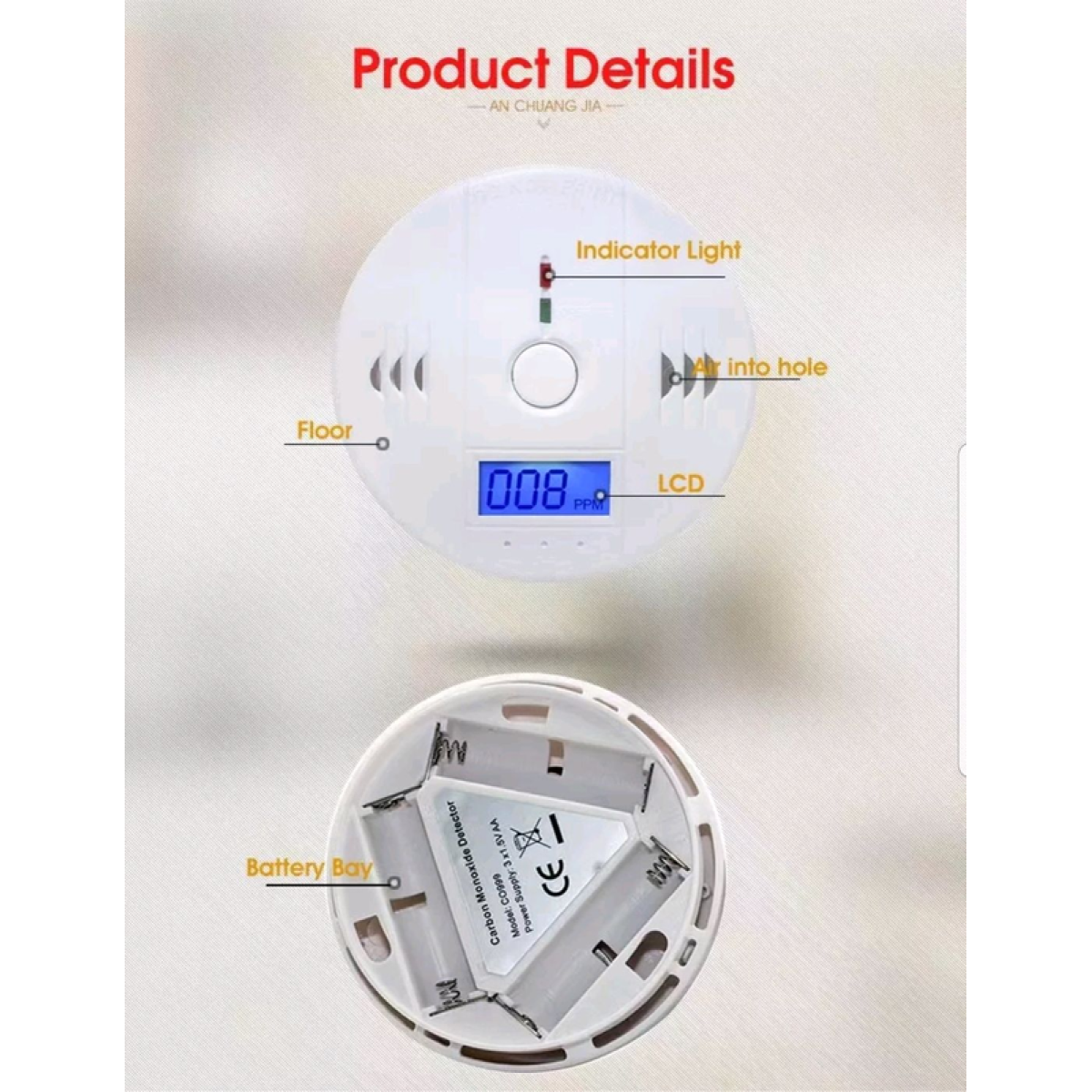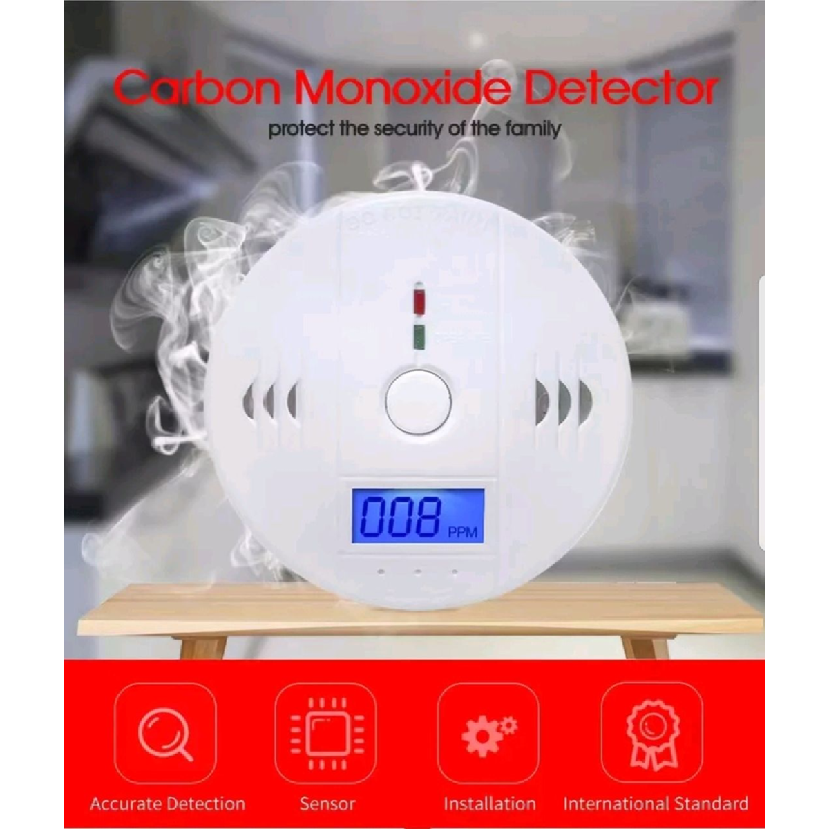 Детектор чадного газу СО Звуковий сигнал РК-індикатор