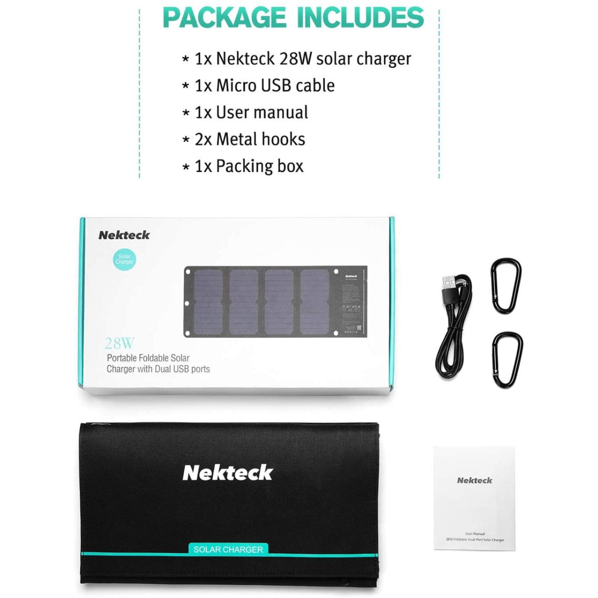 Nekteck 28W Сонячна панель портативна 2 порти USB