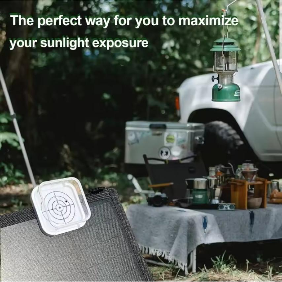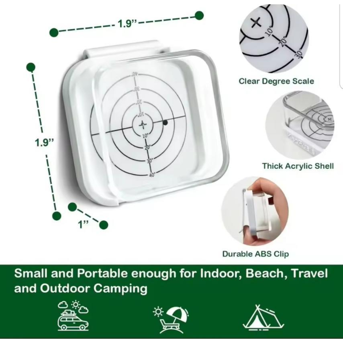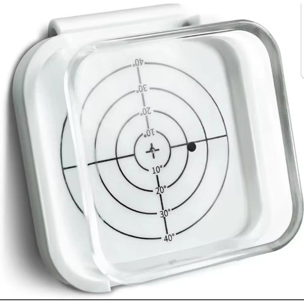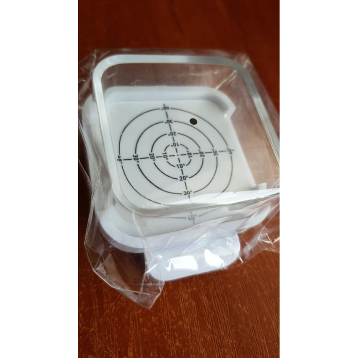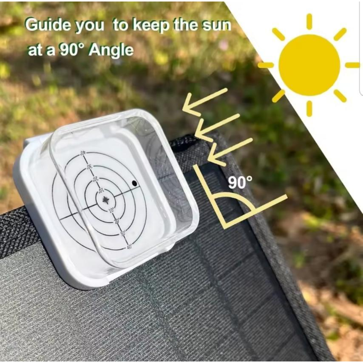 Покажчик кута нахилу сонячної панелі. Сонячний кутомір. Допомагає збільшити ефективність отримання сонячної енергії від сонячних панелей без перебільшення В РОЗІ. Дотримуйтеся золотого правила, промені сонця мають потрапляти на робочу поверхню панелі під кутом 90% Матеріал: основа (пластик) + купол (прозорий полімер). Ступінь захисту IP не вказаний!!! Тому бережіть від дощу! Спробуйте розташувати покажчик так, щоб тінь від нього не падав на робочу поверхню сонячної панелі. Багато панелей цього не люблять. Навіть фрагментарне затемнення панелі може істотно зменшити її ККД! Вага: 26 грамів. Сторона корпусу 50 мм Висота 22 мм. Виробляють СОННІ ТРЕКЕРИ, які автоматично повертають поверхню панелі “послед за сонцем“. Це дороге громіздке обладнання, призначене для стаціонарних панелей, що працює на електроенергії. Цей покажчик вимагає від господаря панелі регулярної уваги, призначений для ПОРТАТИвальних розкладних панелей, важить легше чайної ложки, стоїть копійки. У продажу є такий самий але міцніший, з металевим корпусом, трохи дорожчий.