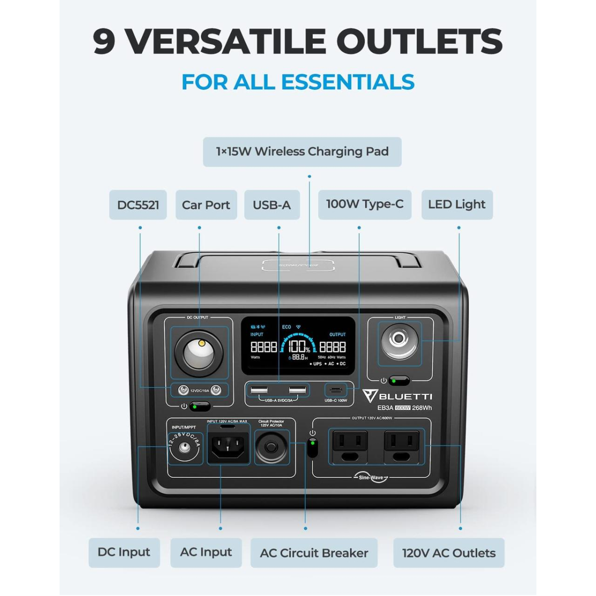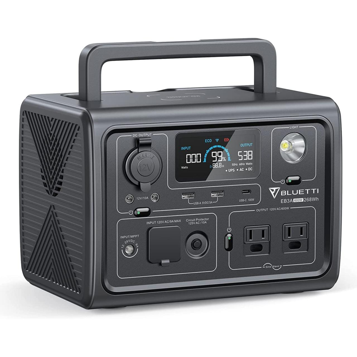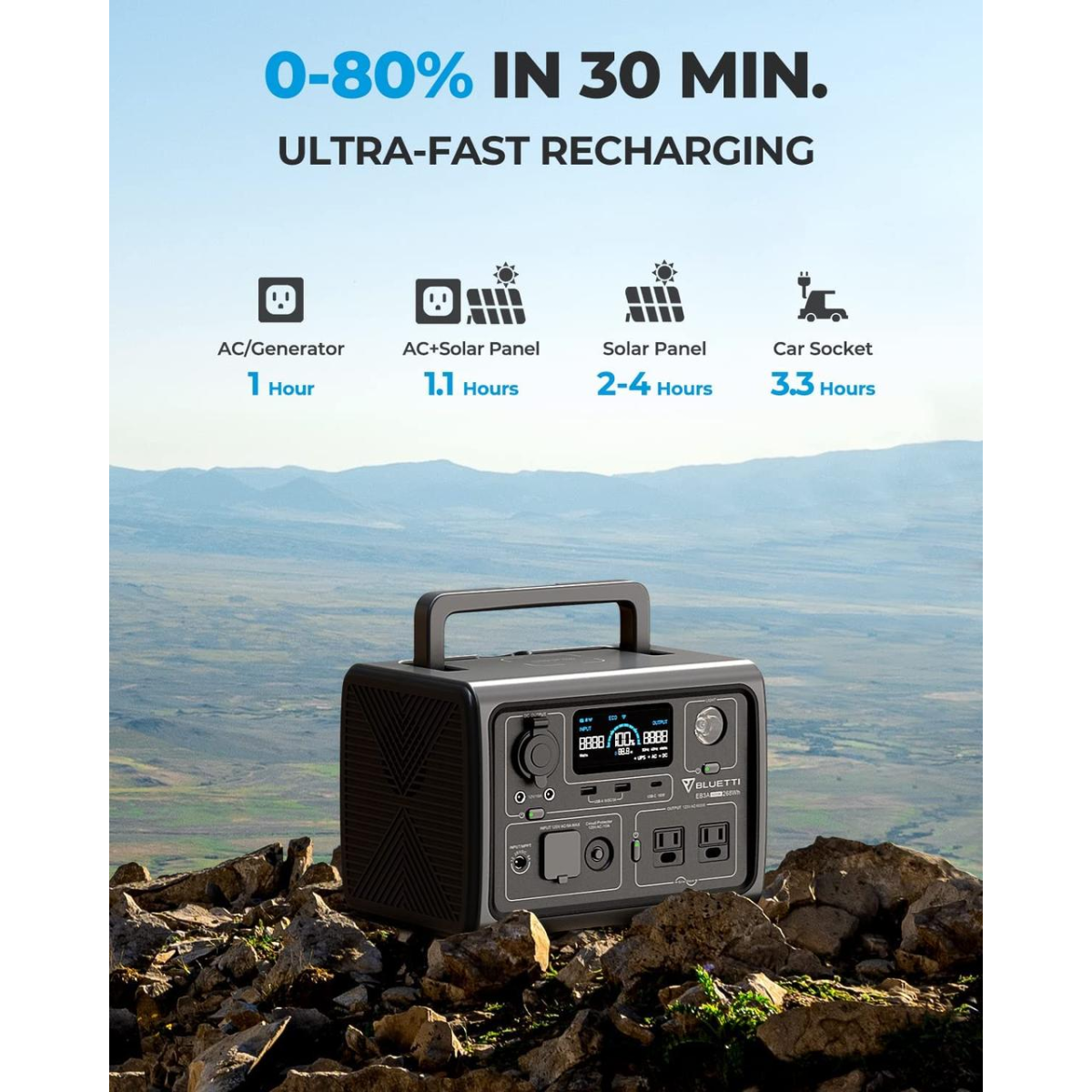 Портативна електростанція BLUETTI EB3A, резервний акумулятор LiFePO4 268 Wh з 2 розетками змінного струму потужністю 600 Вт (перенапруження 1200 Вт), заряджання від 0 до 80% за 30 хвилин, сонячний генератор для кемпінгу на відкритому повітрі.