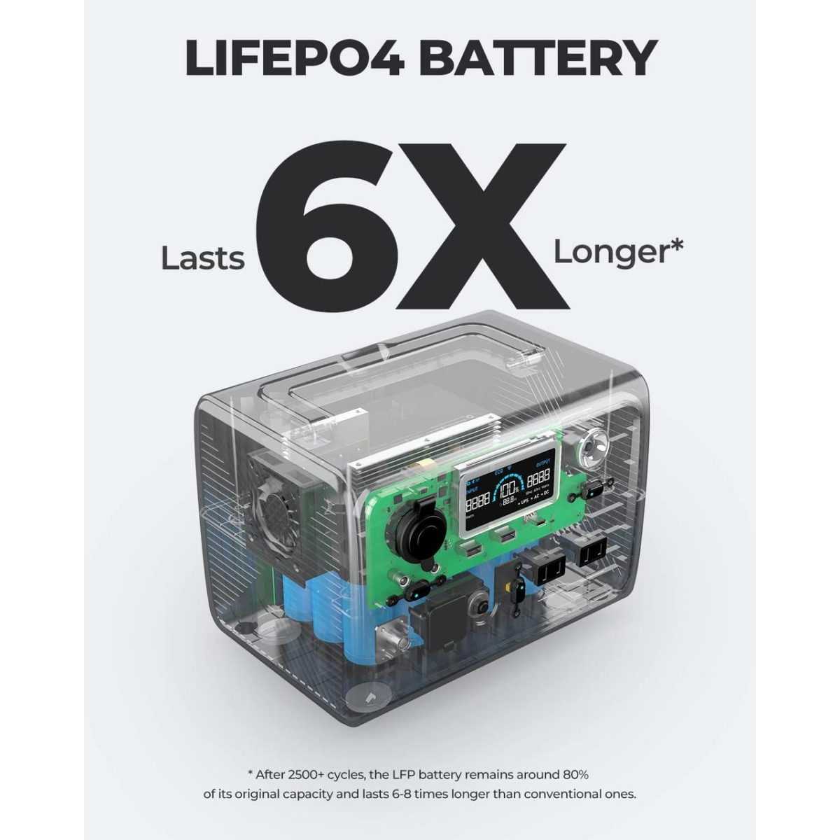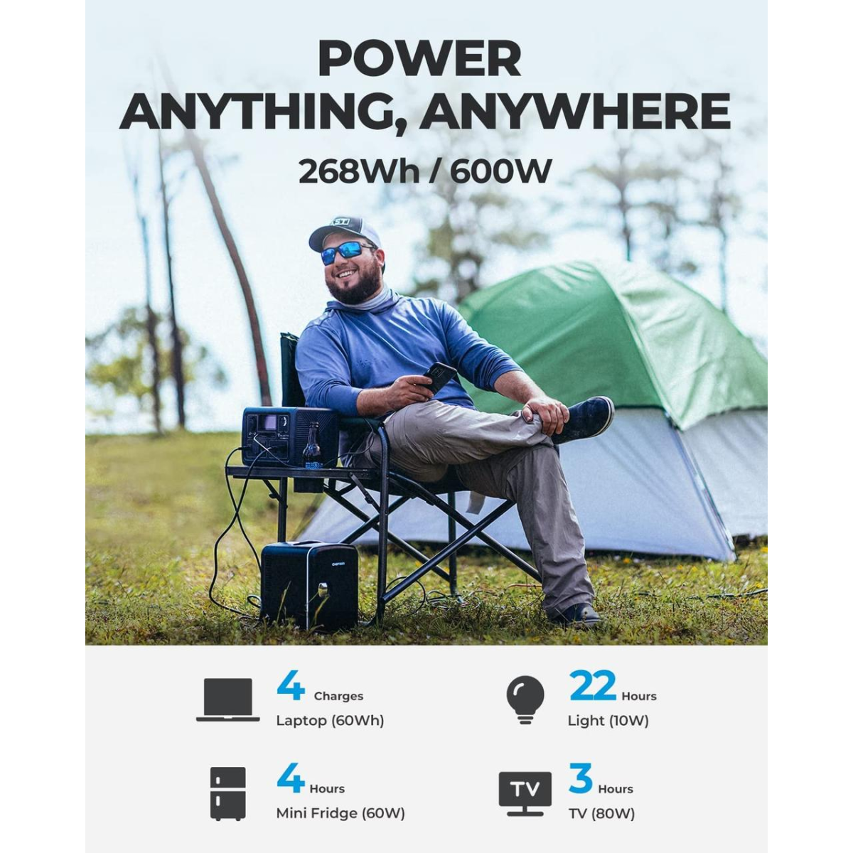 [Маленька, але потужна] — з інвертором змінного струму потужністю 600 Вт, акумуляторною батареєю LiFePO4 ємністю 268 Вт·год і 9 розетками ця електростанція забезпечить живлення ваших основних пристроїв у дорозі або під час вимкнення електроенергії в будинку.
